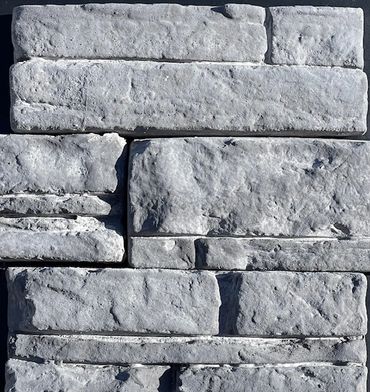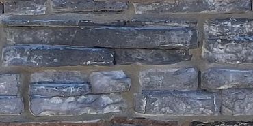Black Bear Quickfit features a rugged, natural ledge-stone profile with long, narrow pieces stacked horizontally. The layout gives it a hand-laid, old world masonry feel. The palette is primarily deep charcoals, and slate grays, with touches of black-gray and lighter chalky highlights through some of the stones. Theses tones create a dramatic, moody look with a lot of depth.