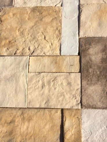 This stone features a refined rectangular profile inspired by natural limestone. Softly textured faces and clean, straight edges create a balanced look that feels both architectural and inviting. A warm blend of creams, sands, and light taupe tones adds subtle movement while maintaining a cohesive, neutral palette.